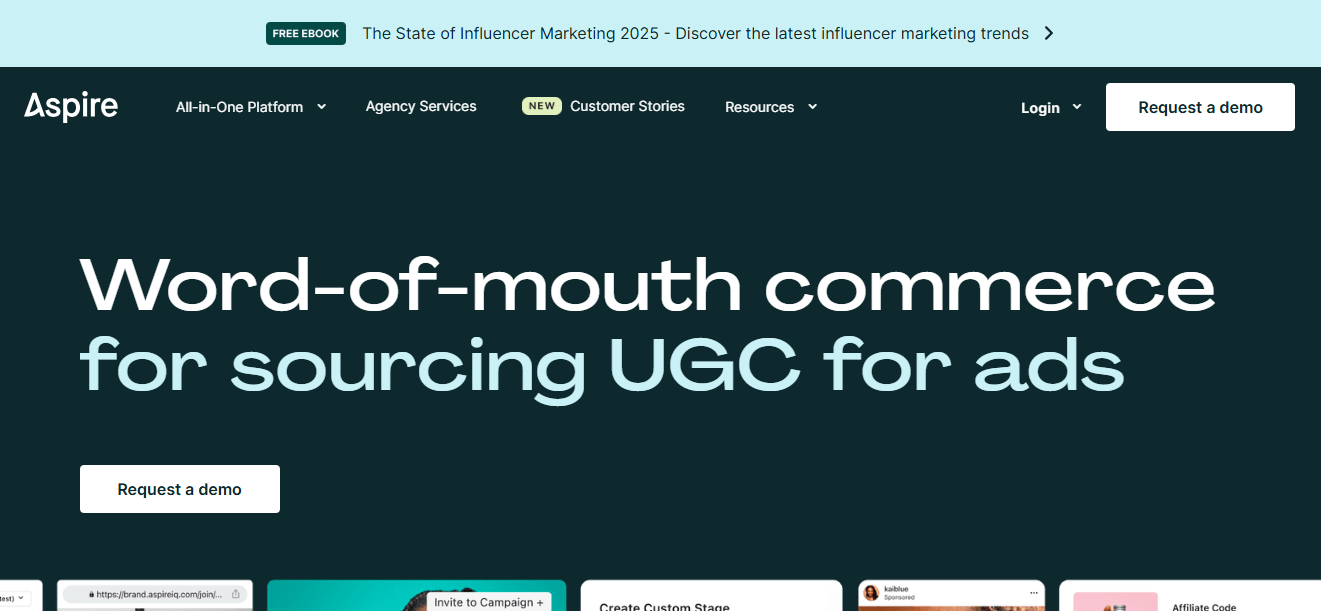 Aspire is an influencer marketing platform designed to manage the full creator lifecycle, from discovery and recruitment to gifting, campaign approvals, and performance tracking. It is positioned as a workflow-driven platform with a strong inbound creator marketplace, where influencers can apply directly to brand campaigns.